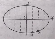 Một vật dao động điều hòa. Hình bên là đồ thị biểu diễn mối quan hệ giữa vận tốc v và li độ x của vật. Gọi k1 và k2lần lượt là hệ số góc của tiếp tuyến với đồ thị tại M và N. tỷ số \(\frac{{{k_1}}}{{{k_2}}}\) bằng