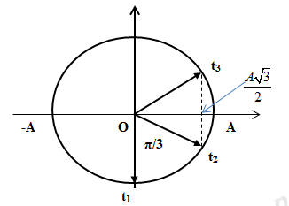 Thời gian vật đi từ t2 đến t3 là : \(\dfrac{1}{6}s = \dfrac{T}{6}\) nên tại t3 là vị trí \(x = \pm \dfrac{{A\sqrt 3 }}{2}\)