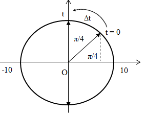 Thời điểm ban đầu t = 0 và thời điểm vật qua vị trí cân bằng được biểu diễn trên đường tròn lượng giác: