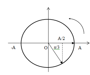 + Khoảng thời gian ngắn nhất vật đi từ li độ x = A/2 đến li độ x = A tương ứng với góc quét: