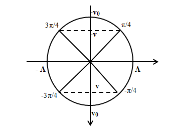 Vì trong 1 chu kỳ, khoảng thời gian mà vận tốc của vật có giá trị biến thiên trên đoạn từ \(-8\pi \sqrt{2}cm/s\) đến \(8\pi \sqrt{2}cm/s\) là T/2 nên các vị trí đó tương ứng như hình vẽ
