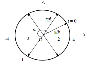 \( \Rightarrow \Delta t = {\alpha \over \omega } = {{{{7\pi } \over 6}} \over {3\pi }} = {7 \over {18}}s\)