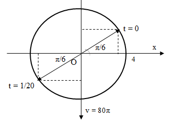 + Sau 1/20 s => góc quét ∆φ = ω.∆t = 20π. (1/20) = π rad