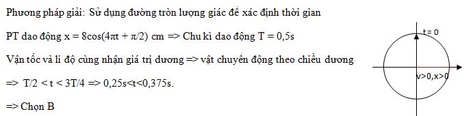 Một vật dao động điều hòa với phương trình x=8cos(4πt+π/2) cm, trong đó t đo bằng s. Khoảng thời gian trong một chu kì đầu tiên vân tốc và li độ đồng thời nhận giá trị dương là