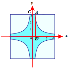 Gọi \(B\left( {\dfrac{1}{3};0} \right),\,\,C\left( {0;3} \right)\), ta được hình chữ nhật OBAC, và \({S_{OBAC}} = \dfrac{1}{3}.3 = 1\).