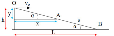 Giả sử vật rơi tại điểm A ở trên dốc có toạ độ (x; y) như hình vẽ: