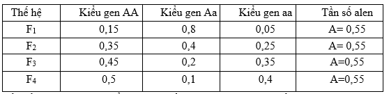 Nghiên cứu sự thay đổi thành phần kiểu gen của quần thể qua 4 thế hệ liên tiếp thu được kết quả như sau