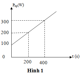 Người ta dự định đun sôi 1 lít nước có nhiệt độ ban đầu 30oC bằng ấm điện hoạt động bình thường có công suất 900W. Công suất hao phí khi đun nước phụ thuộc thời gian theo đồ thị như hình 1. Tính thời gian dự định đun sôi nước? Biết nhiệt dung riêng của nước là 4200J/kg.K.