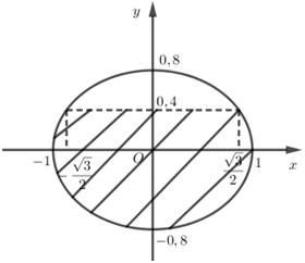 Ta tính diện tích phần không gạch chéo \({S_1}\) là phần hình phẳng giới hạn bởi đường thẳng \(y = 0,4\) với một phần elip phía trên trục hoành có phương trình \(y = 0,8\sqrt {1 - {x^2}} \).