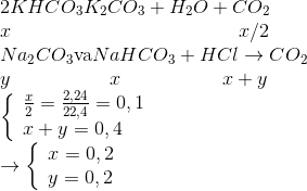 => m = mK2CO3+mNaHCO3 = 138.0,2 + 84.0,2 = 44,4 gam