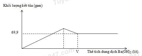 Từ đồ thị ta thấy giá trị m = 69,9 gam không đổi khi thể tích Ba(OH)2 thay đổi
