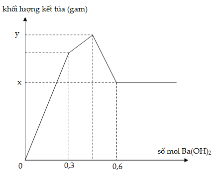 Nhỏ từ từ dung dịch Ba(OH)2 vào dung dịch hỗn hợp Al2(SO4)3 và AlCl3 thu được kết tủa có khối lượng theo số mol Ba(OH)2 như đồ thị:
