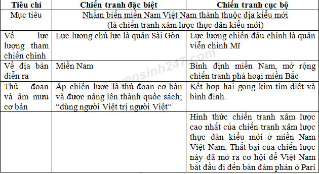 Nội dung nào dưới đây là một trong những điểm khác nhau giữa chiến lược “Chiến tranh cục bộ” (1965 – 1968) với chiến lược “Chiến tranh đặc biệt” (1961 – 1965) của Mỹ ở Việt Nam?