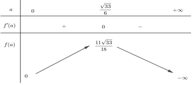 Xét hàm số: \(f\left( a \right)=\left( 5,5-2{{a}^{2}} \right)a=5,5a-2{{a}^{3}}.\)