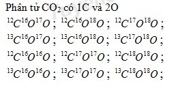 Oxi có 3 đồng vị 16O,17O,18O và Cacbon có 2 đồng vị 12C,13C . Hãy viết công thức các loại phân tử cacbonđioxit (CO2)