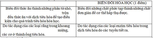 b) Biến đổi cơ học và biến đổi hóa học trong tiêu hóa thức ăn ở động vật.