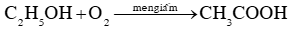 Phản ứng lên men giấm để sản xuất giấm ăn bằng cách lên men dung dịch rượu etylic loãng: