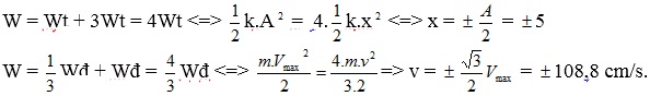 W = Wt + Wđ khi động năng bằng 3 lần thế năng ta được