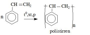 Polistiren là sản phẩm của phản ứng trùng hợp C6H5CH=CH2