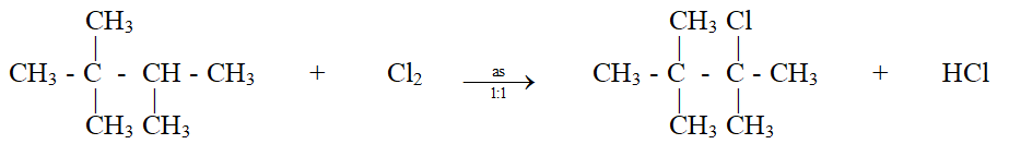 Sản phẩm chính thu được khi cho 2,2,3-trimetylbutan phản ứng với Clo(askt) tỉ lệ 1:1là