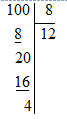 Ta có phép chia: \(100:8 = 12\) (dư 4)