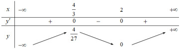 \(y' = 0 \Leftrightarrow 3{x^2} - 10x + 8 = 0 \Leftrightarrow \left[ \begin{array}{l}x = 2\\x = \dfrac{4}{3}\end{array} \right.\)