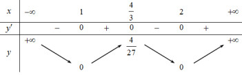 Từ BBT của đồ thị hàm số \(y = \left( {x - 1} \right){\left( {x - 2} \right)^2}\) ta suy ra BBT của đồ thị hàm số \(y = \left| {\left( {x - 1} \right){{\left( {x - 2} \right)}^2}} \right|\) như sau: