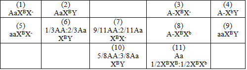 (4) sai, cặp vợ chồng III10 và III11 là aaXbY = 3/16 x 1/2 x 1/2 x 1/4 = 3/256