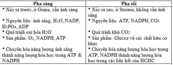 a/ So sánh pha sáng & pha tối của Quang hợp ở cây xanh