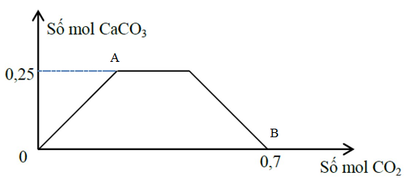 Tại điểm A: ↓ đạt max: nCO3(2-) = nCO2 = nCa(OH)2 = 0,25 mol → b = 0,25 mol