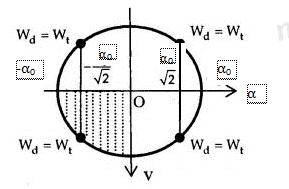 Khi \({{\rm{W}}_{\rm{d}}} = {{\rm{W}}_t} \to {\rm{W}} = {{\rm{W}}_{\rm{d}}} + {{\rm{W}}_t} = 2{{\rm{W}}_t} \leftrightarrow \frac{1}{2}mgl{\alpha _0}^2 = 2.\frac{1}{2}mgl{\alpha ^2} \to \alpha = \pm \frac{{{\alpha _0}}}{{\sqrt 2 }}\)