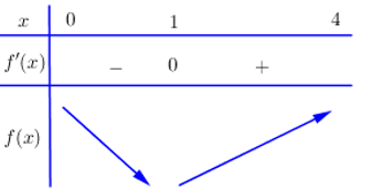 Dựa vào BBT ta thấy \(\underset{\left( 0;4 \right)}{\mathop{\min }}\,f\left( x \right)=f\left( 1 \right)=3\Leftrightarrow m\le 3\)