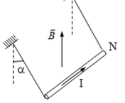 \tan \alpha = \frac{F}{P} = \frac{{B.I.l.\sin \alpha }}{{mg}} = \frac{{0,25.2\sqrt 3 .0,2}}{{0,01.10}} = \sqrt 3 \\