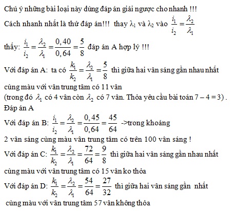 Nên x = 5 i1= 8 i2 => 5 λ1 = 8λ2 => λ2 = 0,4μm( nhận)