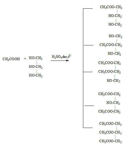 etse tạo bởi axit đơn chức và ancol 3 chức ⟹ viết các sản phẩm thu được có thể thế 1, 2 hoặc cả 3 nhóm –OH.