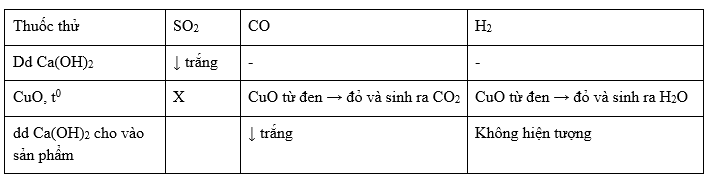 Thuốc thử dùng để phân biệt 3 khí SO2; COvà H2 là: