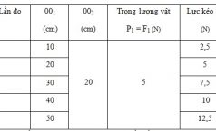 Tiến hành thí nghiệm với đòn bẩy, một bạn học sinh thu được kết quả như sau (với đòn bẩy có dạng như trong hình vẽ bên)