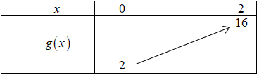 \( \Rightarrow \) Với \(x \in \left[ {0;2} \right]\) thì \(g\left( x \right) \in \left[ {2;16} \right]\)