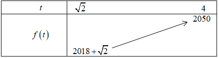 Bài toán trở thành tìm giá trị lớn nhất và giá trị nhỏ nhất của hàm số \(f\left( t \right) = 2{t^2} + t + 2014\) trên đoạn \(\left[ {\sqrt 2 ;4} \right].\)