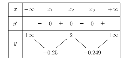 \(f'(x) = 0\) tại 3 giá trị\({x_1} = \dfrac{{2 - \sqrt 6 }}{2},{x_2} = 1,{x_3} = \dfrac{{2 + \sqrt 6 }}{2}\)