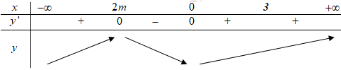 Từ BBT \( \Rightarrow \mathop {\min }\limits_{\left[ {0;3} \right]} y = y\left( {2m} \right) = 6 - 4{m^3}\)