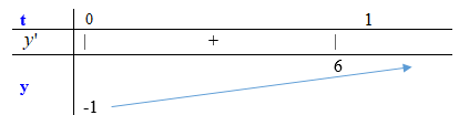Xét hàm số \(y = 2{t^2} + 5t - 1,\,\,t \in \left[ {0;1} \right)\), có: \(y' = 4t + 5 > 0,\,\,\forall t \in \left[ {0;1} \right)\)