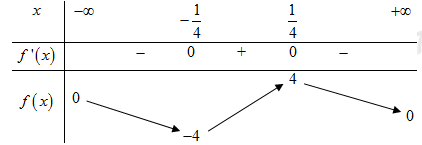 Ta có \(f'\left( x \right) = \dfrac{{32\left( {16{x^2} + 1} \right) - 32x.32x}}{{{{\left( {16{x^2} + 1} \right)}^2}}} = \dfrac{{ - 512{x^2} + 32}}{{{{\left( {16{x^2} + 1} \right)}^2}}} = 0 \Leftrightarrow x = \pm \dfrac{1}{4}\).