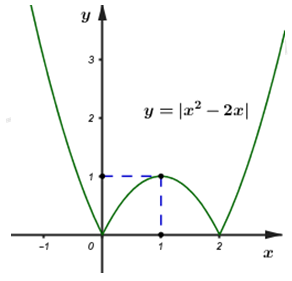 Ta có đồ thị hàm số \(y = \left| {{x^2} - 2x} \right|\):