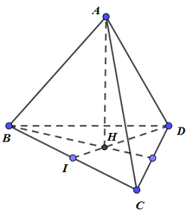 \(H\) là trọng tâm tam giác BCD \( \Rightarrow HD = \dfrac{2}{3}ID = \dfrac{2}{3}.\dfrac{{2\sqrt 3 }}{2} = \dfrac{{2\sqrt 3 }}{3}\)