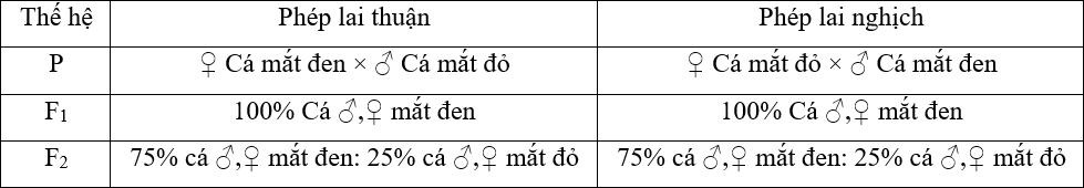 Tính trạng màu mắt ở cá kiếm do 1 gen có 2 alen quy định. Một nhóm học sinh tiến hành thí nghiệm và ghi lại kết quả ở bảng sau: