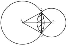 Trên cánh đồng có \(2\) con bò được cột vào \(2\) cây cọc khác nhau. Biết khoảng cách giữa hai cọc là \(4\) mét, còn \(2\) sợi dây cột \(2\) con bò dài \(3\) mét và \(2\) mét. Tính phần diện tích mặt cỏ lớn nhất mà \(2\) con bò có thể ăn chung (lấy giá trị gần đúng nhất).