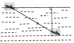 Trong buổi tập luyện, một tàu ngầm đang ở trên mặt biển bắt đầu lặn xuống và di chuyển theo đường thẳng tạo với mặt nước biển một góc 210 (xem hình bên).