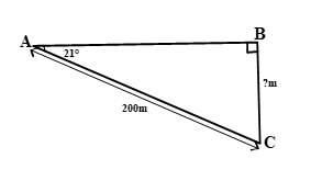 \(\sin BAC=\frac{BC}{AC}\Rightarrow BC=AC.\sin BAC=200.\sin {{21}^{0}}\approx 72m\)