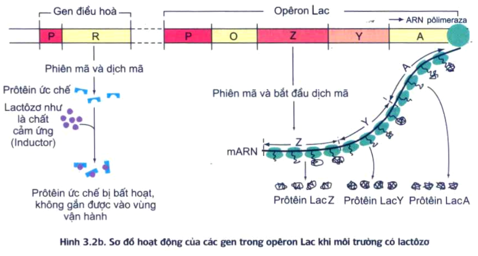 Trong cơ chế điều hòa hoạt động của opêron Lac ở E.coli, khi môi trường có lactôzơ thì